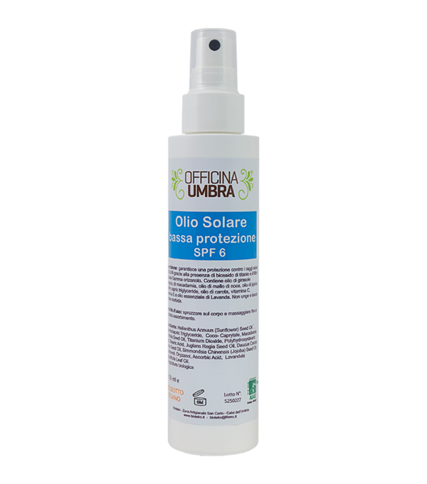 Garantisce una protezione contro i raggi solari UVB-UVA grazie alla presenza di biossido di titanio e il filtro naturale Gamma orizanolo. Contiene olio di girasole biologico, di macadamia, olio di mallo di noce, olio di jojoba, caprilic capric triglyceride, olio di carota, vitamina C, Vitamina E e olio essenziale di Lavanda. Non unge e lascia la pelle morbida.